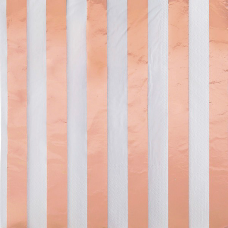 16 Rose Gold Foil Stripes Lunch Napkins