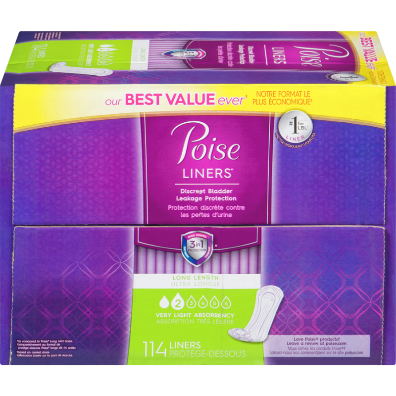 Daily Incontinence Panty Liners, Very Light Absorbency, Long, 114EA