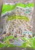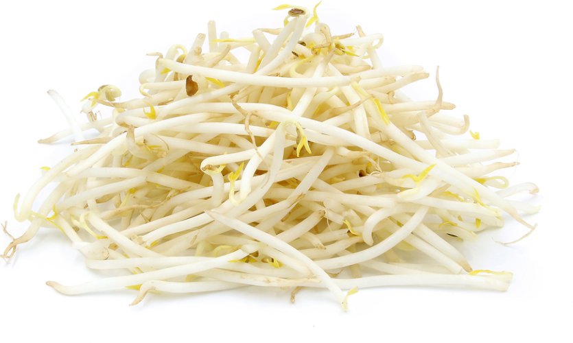 Bean sprouts are the young shoots of the mung bean. They have petite pale yellow leaves attached to a silvery bright white shoot. Bean sprouts offer crunch and a subtle nutty flavor with a high water content.