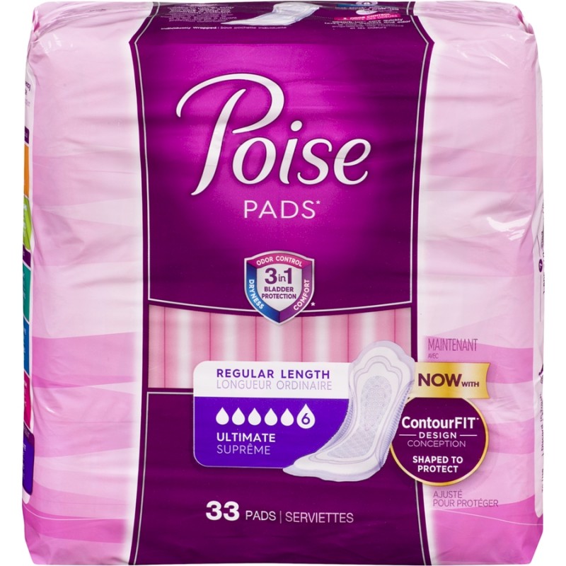 Incontinence Pads, Ultimate Absorbency, Regular Length, 33 Count