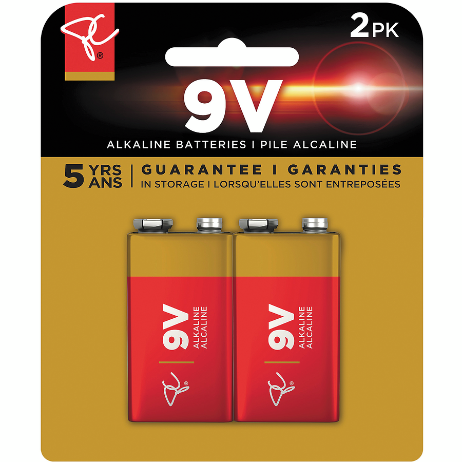Long Life Alkaline Batteries, 9V 2x1ea