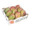 Mangoes have a firm, fibrous orange flesh and sweet flavour. Their skin is typically greenish-yellow with a red blush covering most of it, but colour isn’t a reliable way of way of testing for ripeness. Instead, squeeze the mango gently. If it’s ripe it will give slightly. Enjoy mango on its own, in fruit salad, or chutney.