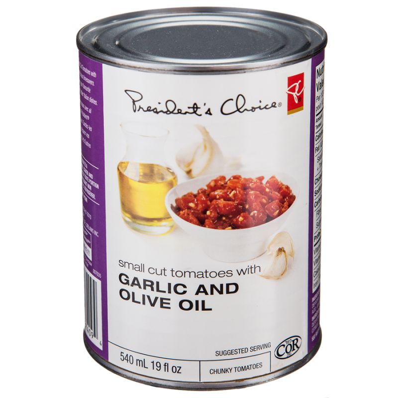 PRESIDENTS CHOICE Small Cut Tomatoes With Garlic And Olive Oil 540 ml